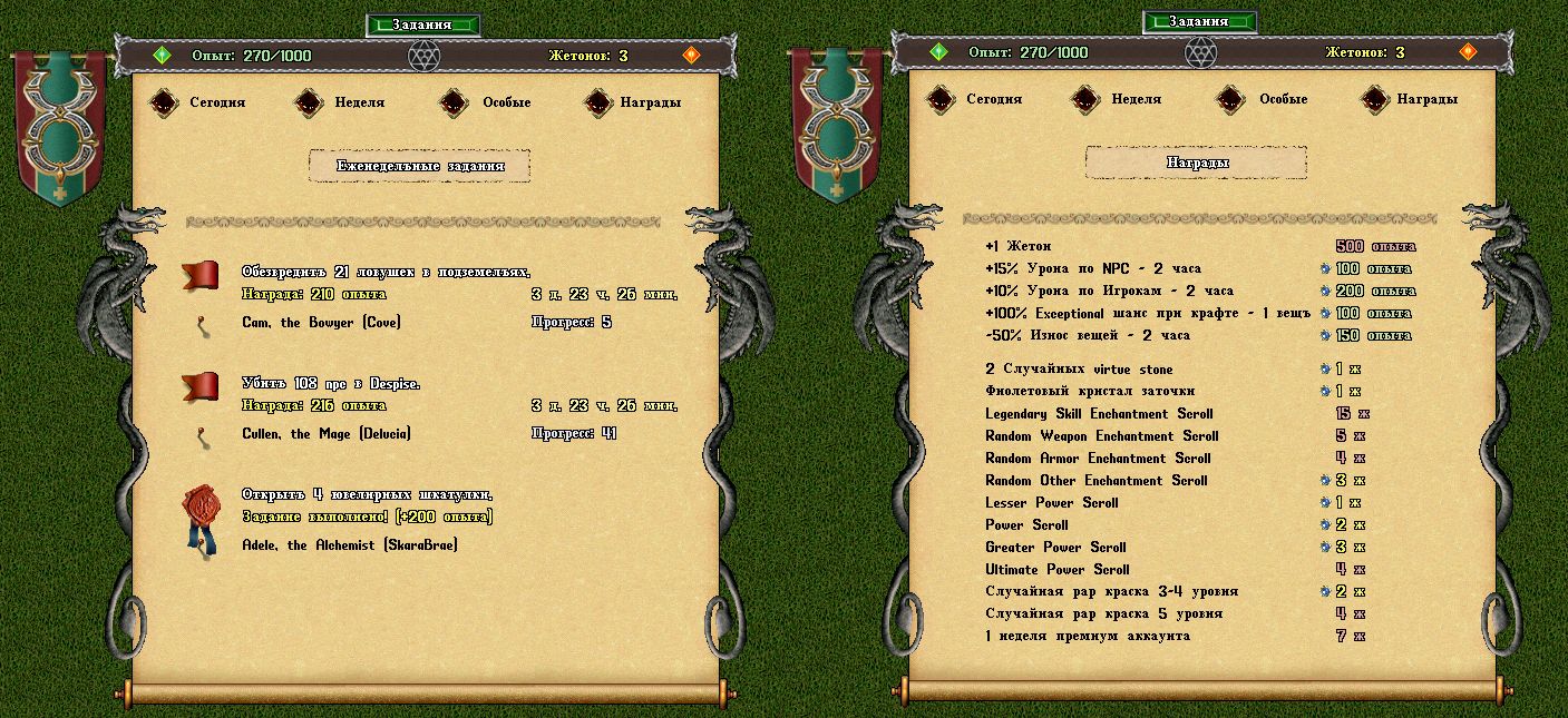 - опыт за задания (копится максимум до 1000) - можно обменять на жетоны или различные временные бонусы